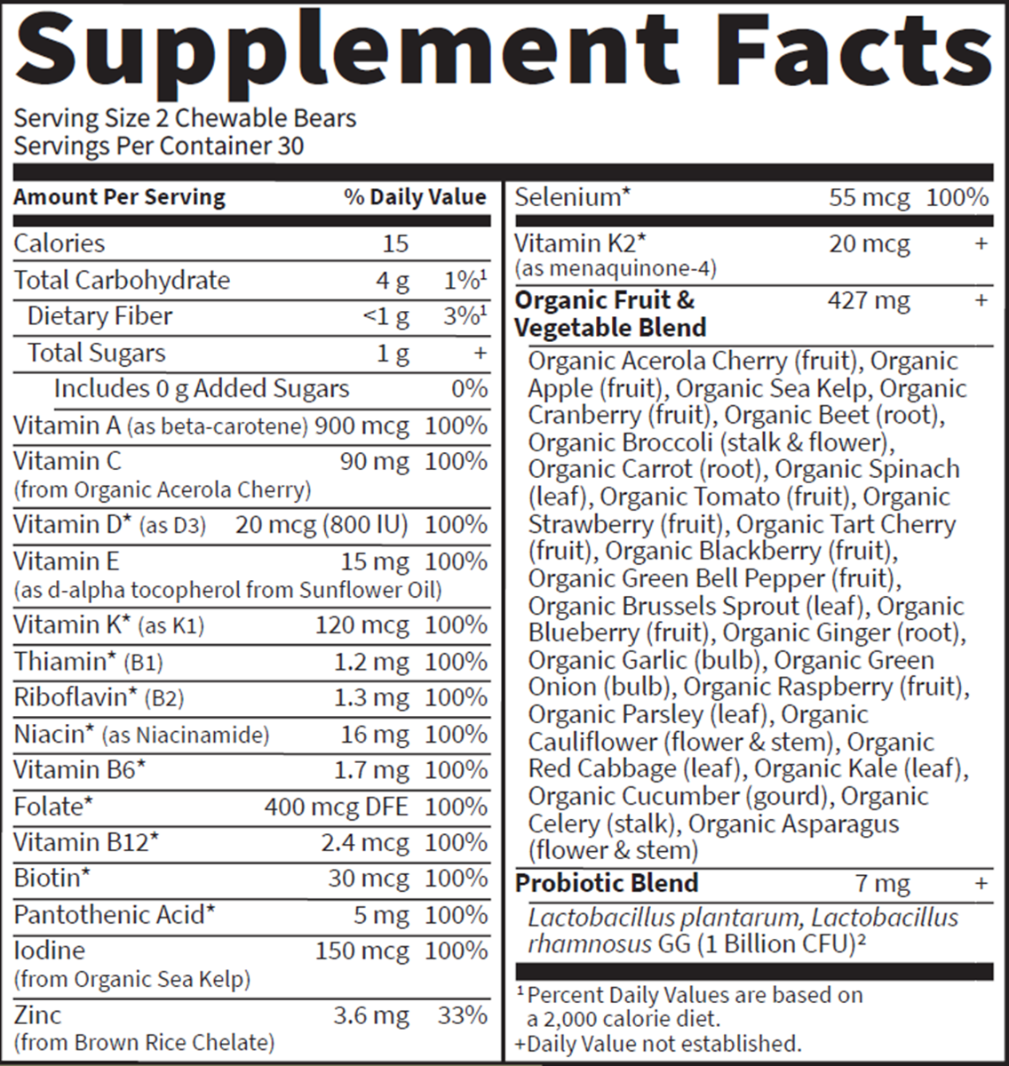Children 4 years and older chew 2 bears daily under adult supervision.