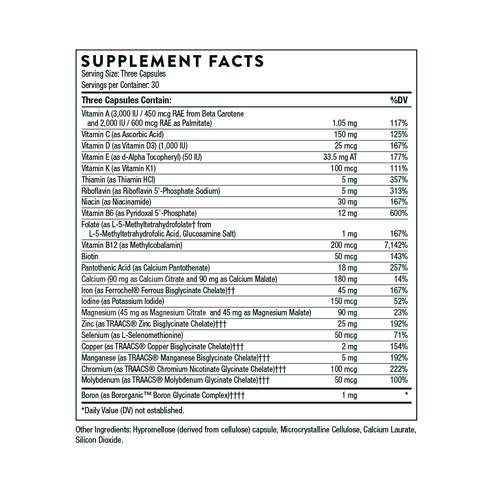 ***This product uses Albion’s TRAACS® Zinc Bisglycinate Chelate, Copper Bisglycinate Chelate, Manganese Bisglycinate Chelate, Chromium Nicotinate Glycinate Chelate, and Molybdenum Glycinate Chelate. TRAACS is a registered trademark of Albion International, Inc.