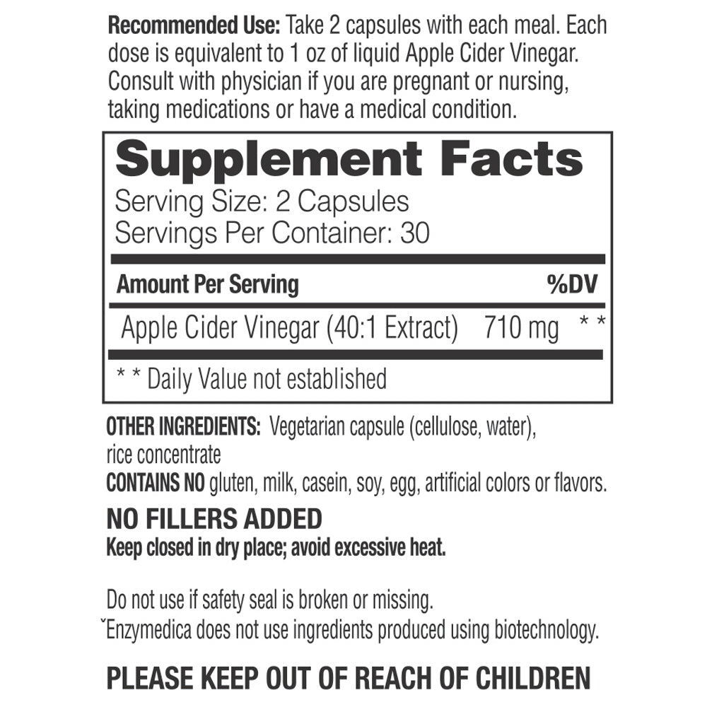 Enzymedica的蘋果醋瘦身方使用高品質的蘋果發酵製成,含有珍貴的醋母,濃縮製成容易服用的膠囊。一顆等於一盎司的高品質得蘋果醋。