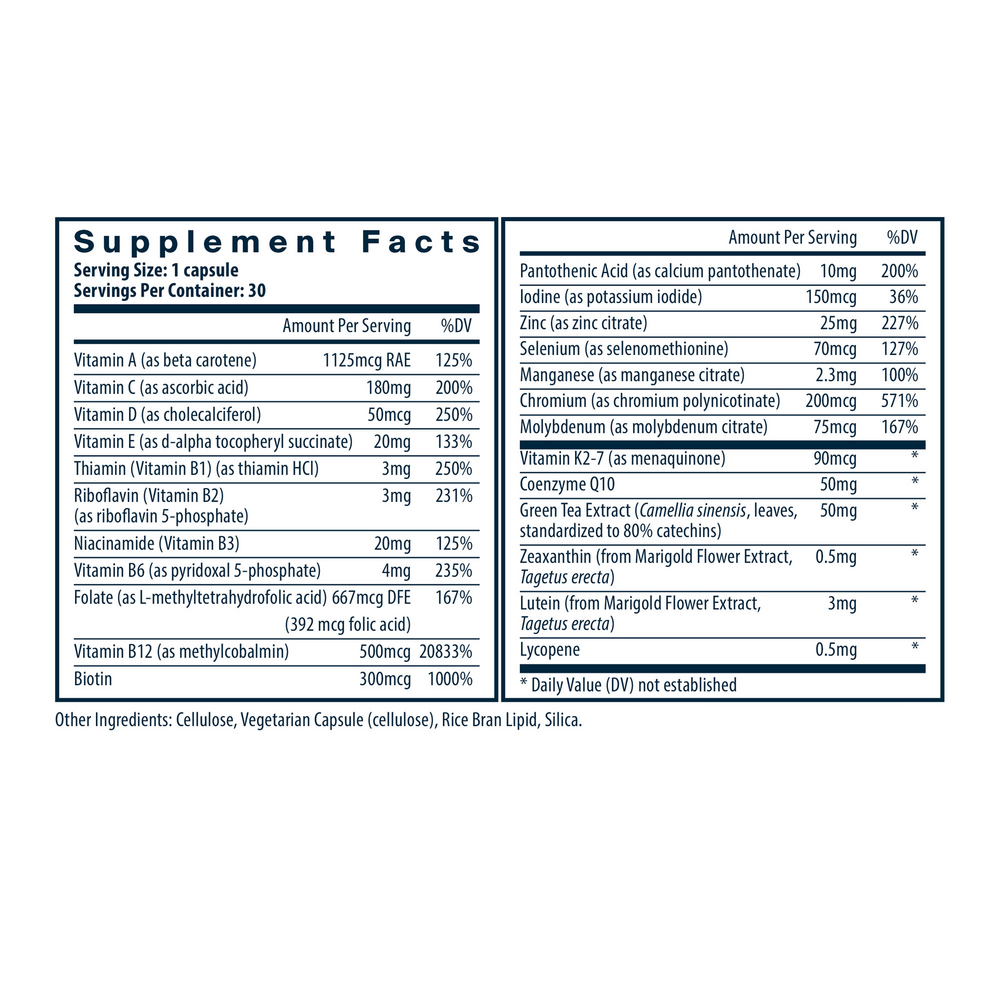 保持營養充足,同時減少膠囊數量,選擇 Basic Nutrients 2/Day,這是一款完整的多種維生素和礦物質配方,每天僅需兩顆膠囊。